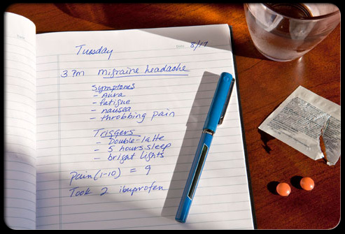 با داشتن یک دفتر یاداشت روزانه علل ایجاد میگرن در خودتان را پیدا کنید. هر وقت که دچار سر درد شدید علائم قبل از سردرد، علل محرک، و شدت سردرد را یاداشت نمایید. اگر بتوانید بعضی از عوامل محرک ایجاد سردرد خود را بیاید ممکن است بتوانید از سردردهای آینده پیشگیری کنید.