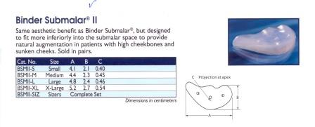 مجموع پروتز Terino Malar Shell®و Binder Submalar®  است. برای بیمارانی که هم عدم رشد کافی گونه وهم کمبود بافت نرم قسمت میانی صورت دارند مناسب است.