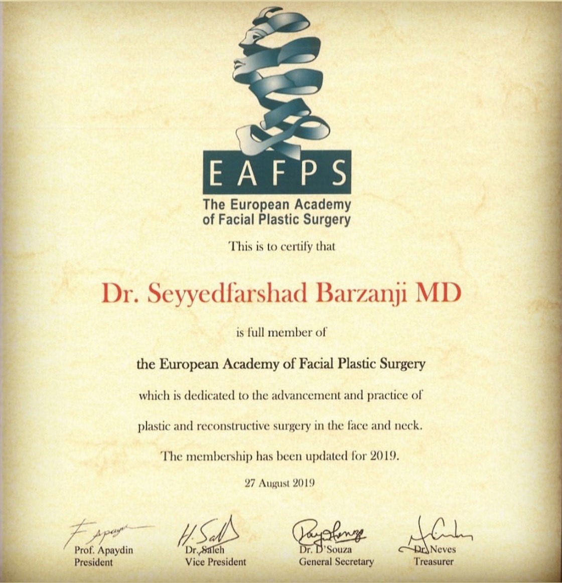 ایشان در سال ٢٠٠١ موفق به کسب مدرک ECFMG از امریکا شد.وی ٨ سال سابقه تدریس در دانشگاه علوم پزشکی داشته و در حال حاضر عضو انجمن گوش٬گلو٬بینی و جراحان سرو گردن ایران٬انجمن راینولوژی ایران٬انجمن تحقیقات راینولوژی ایران و آکادمی جراحی پلاستیک صورت اروپا می باشد.