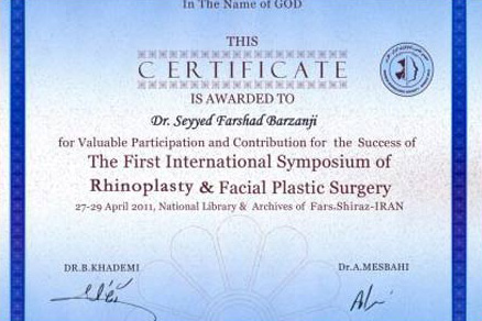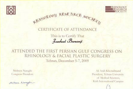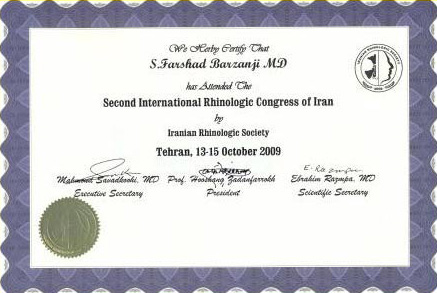 دکترسیدفرشاد برزنجی فارغ التحصیل رشته پزشکی عمومی با رتبه اول از دانشگاه تهران در سال ١٣٧۱ و فارغ التحصیل دوره تخصصی گوش و حلق و بینی و جراحی سر و گردن با کسب بورد تخصصی در سال ١٣٧٥ می باشد.